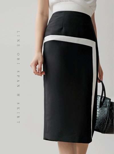 배색 라인 오비 스판 H 스커트