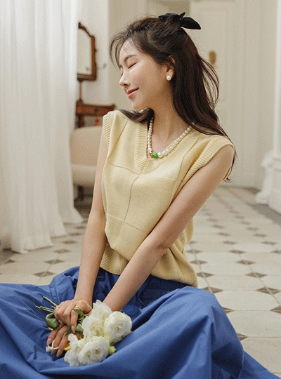 블럭 짜임 파스텔 컬러 브이넥 니트 베스트