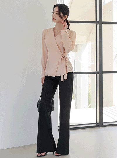 웨이스트 절개라인 랩 블라우스