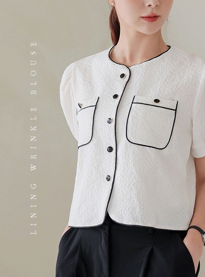 배색 라이닝 링클 블라우스
