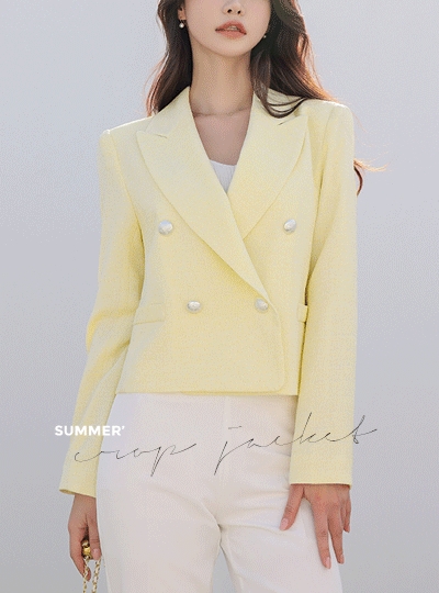 썸머 트위드 더블버튼 크롭 자켓