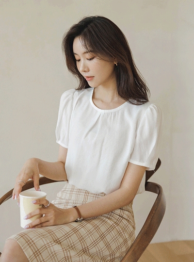 심플 원 핀턱 포인트 데일리 블라우스