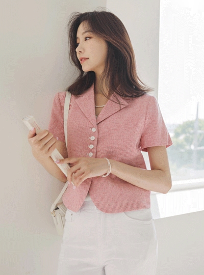 체크 패턴 포인트 데일리 린넨 자켓