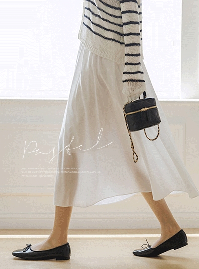 글로시 파스텔 컬러 밴딩 롱 훌 스커트