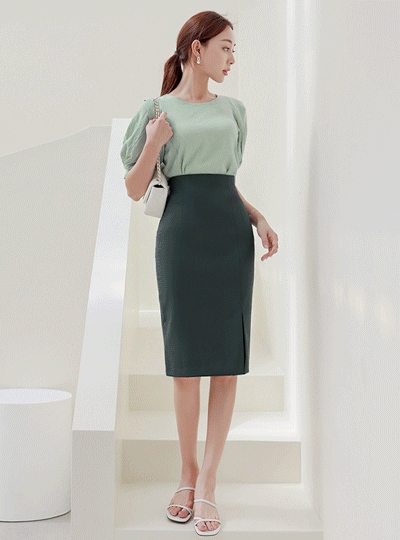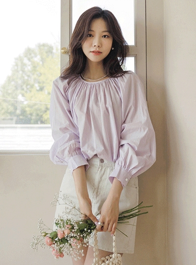 파스텔 컬러 볼륨 셔링 여리 블라우스