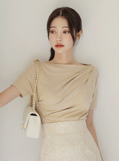 펜톤 컬러 딥 라운드넥 썸머 니트