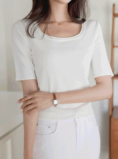 페미닌 스퀘어넥 5부소매 썸머 니트티