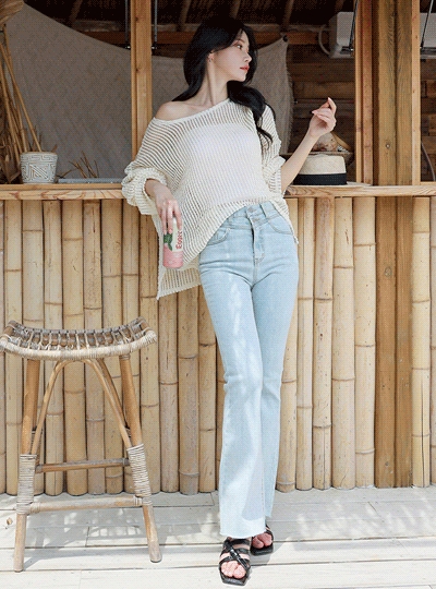 투버튼 하이웨스트 롱 부츠컷 데님팬츠