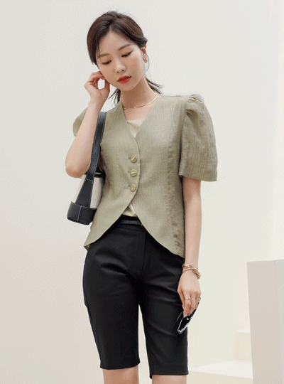 볼륨 퍼프소매 튤립 라인 무드 자켓
