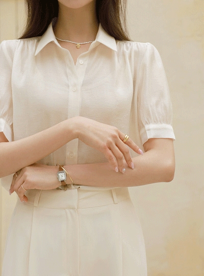 은은한 글로시 텐셀 퍼프 시스루 블라우스