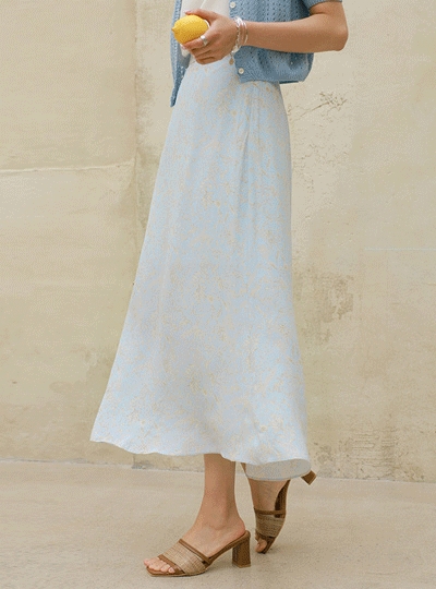 페미닌 무드 보타닉 패턴 백밴딩 롱스커트