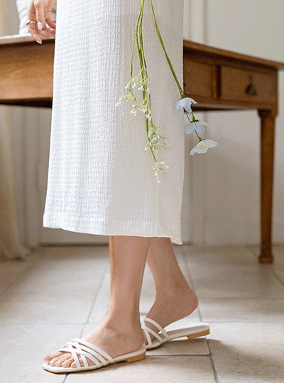 파스텔 포인트 컬러 와플 밴딩 롱 스커트