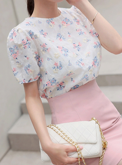 캔디 플라워 자수 퍼프소매 블라우스 Ⅱ