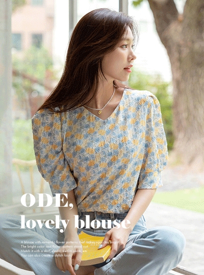 화사한 로맨틱 플라워 패턴 퍼프 소매 블라우스