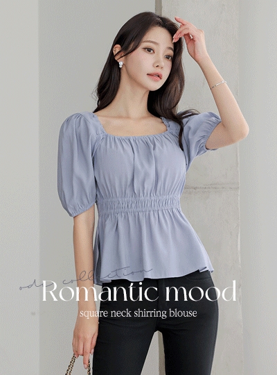 스퀘어넥 셔링 스모킹 블라우스