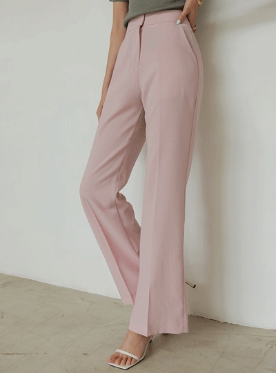 파스텔 컬러 포인트 부츠컷 린넨 슬랙스