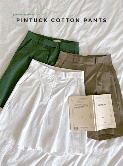 썸머 포인트 컬러 핀턱 코튼 버뮤다 팬츠