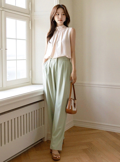 프루트 파스텔 포인트 컬러 밴딩 와이드 슬랙스