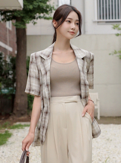 린넨 타탄 체크 기본핏 자켓