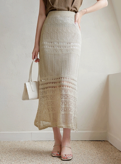 아일렛 뜨개 레이스 펀칭 니트 스커트