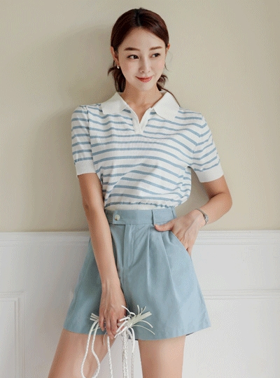 사이드 버튼 핀턱 코튼 4부 팬츠