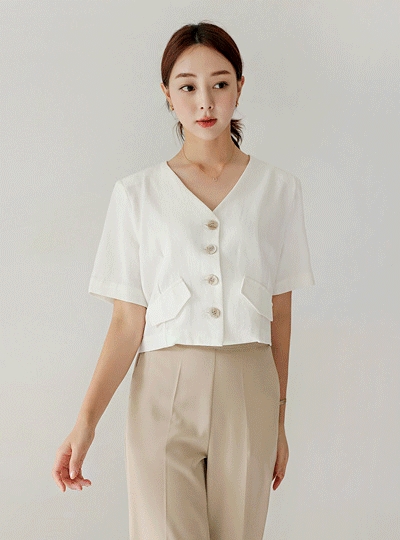 코튼 린넨 썸머 브이넥 크롭 자켓