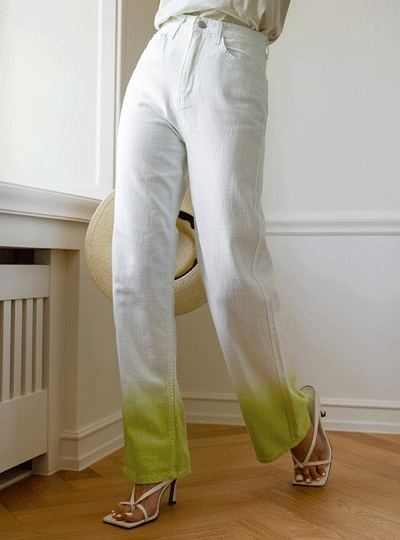 라임 프루트 그라데이션 코튼 와이드 팬츠