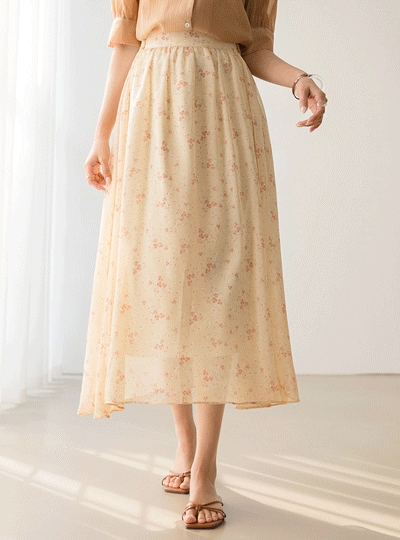 스텔라 플라워 패턴 백밴딩 쉬폰 롱 스커트