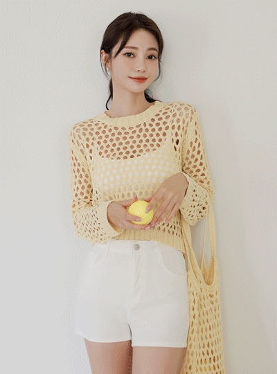 펀칭 그물 니트 티&가방 SET