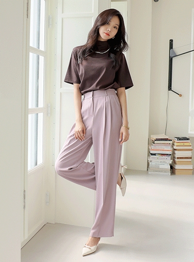 찰랑찰랑 유연한 더블 핀턱 와이드 컬러 슬랙스