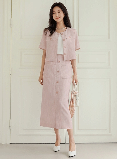 트위드 린넨 텍스쳐 버튼 백밴딩 스커트