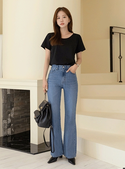 롱다리 핏 밑단 사이드 트임 데님 팬츠