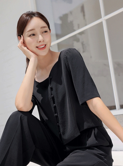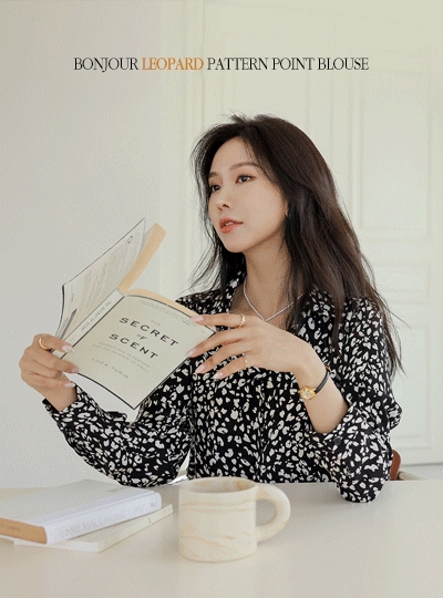 봉쥬르 레오파드 패턴 포인트 블라우스