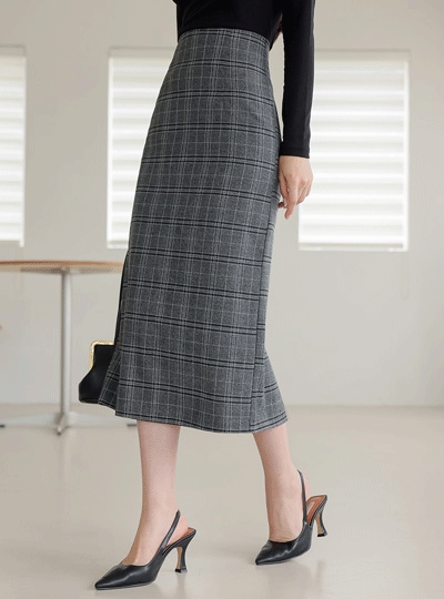 어텀 체크 H라인 롱 스커트