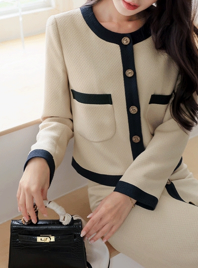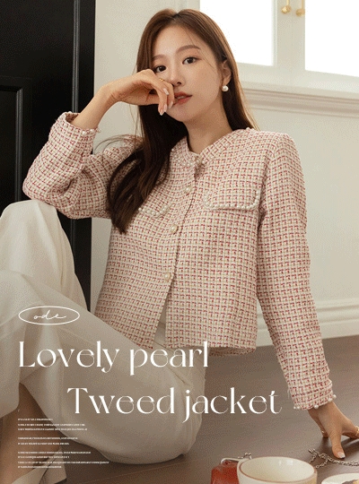 러블리 진주 포인트 배색 트위드 자켓