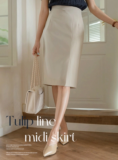 튤립 라인 포인트 미디 스커트
