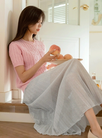 써니 샤이닝 글리터 밴딩 플리츠 롱 스커트