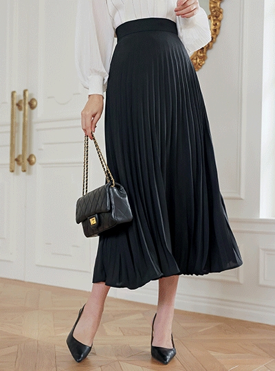 솔리드 백밴딩 플리츠 롱 스커트