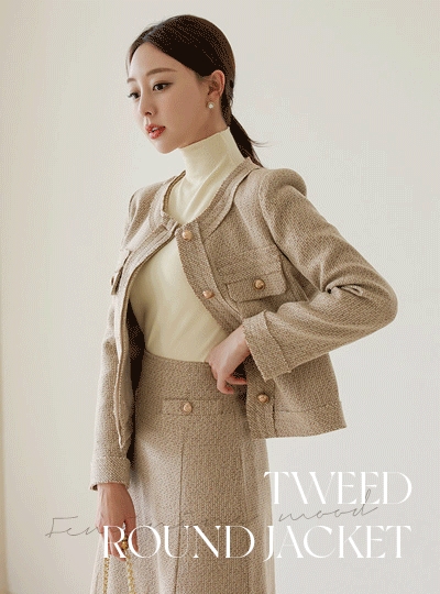 로망스 멀티 컬러 트위드 라운드 자켓