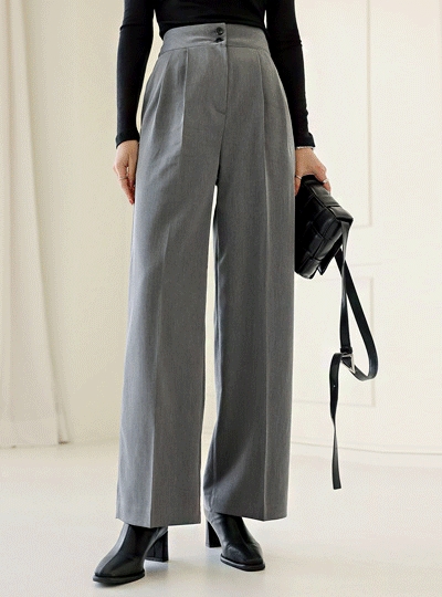 애쉬 투버튼 와이드 핀턱 슬랙스