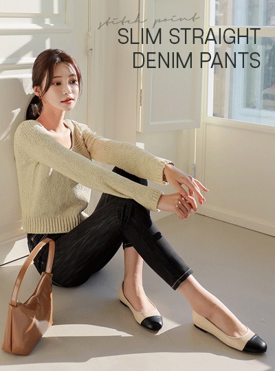 퓨어 스티치 포인트 생지 슬림일자 데님 팬츠