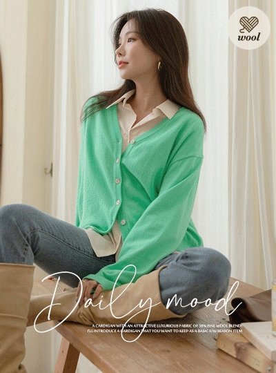 헤링 포인트 컬러 파인울 브이넥 가디건