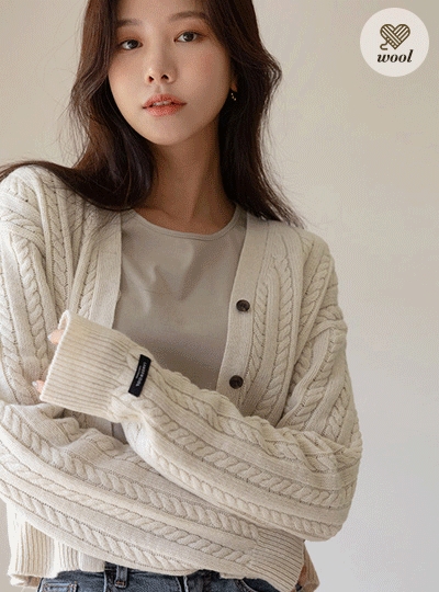 꽈배기 패턴 히든 버튼 어텀 울 가디건