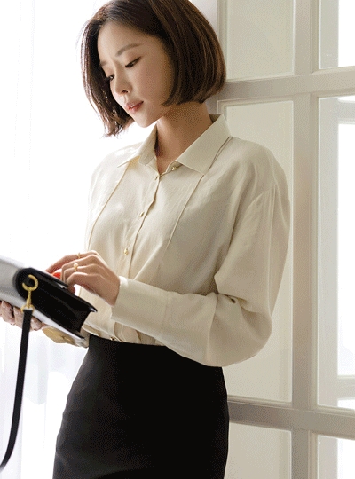라인 포인트 골드버튼 블라우스